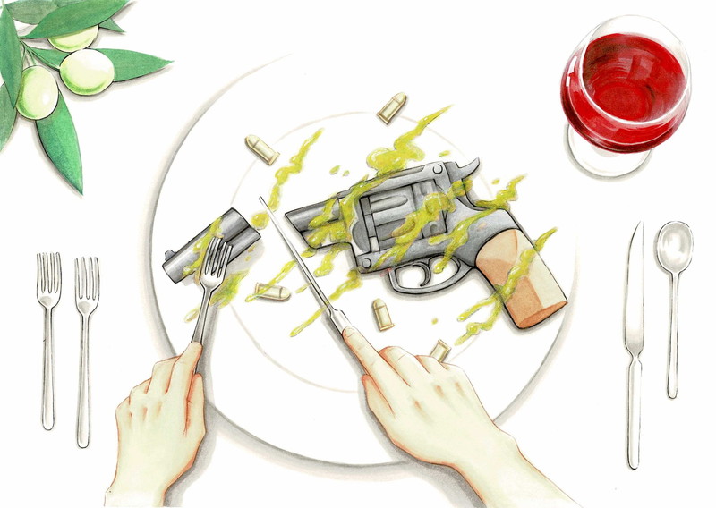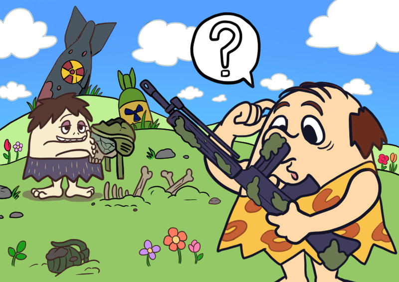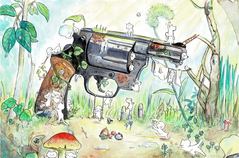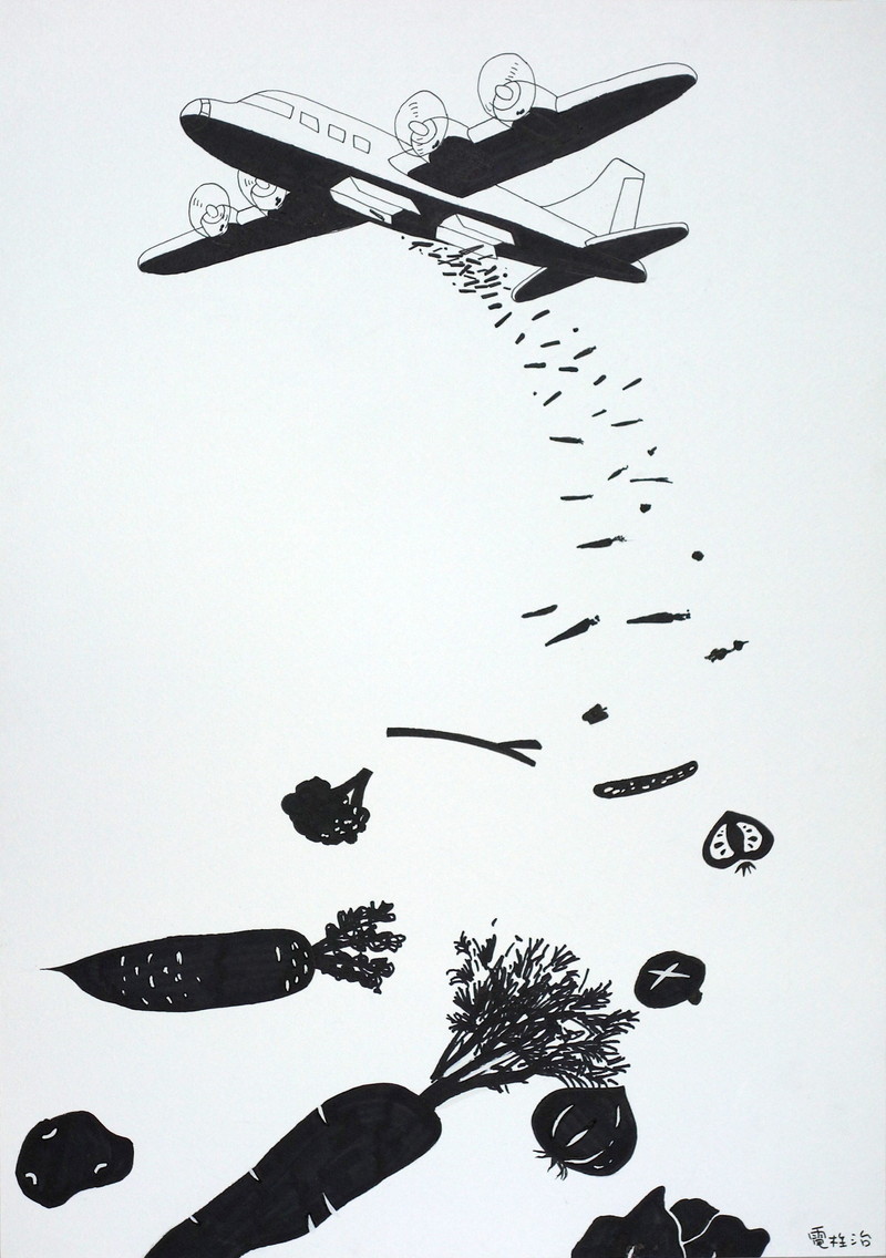 優秀賞武器をなくすためには文明を放棄する必要があるという重い主張であるが、ポップでコミカルな絵柄にすることで軽快なひとコママンガに仕上げられています。(木寺良一)